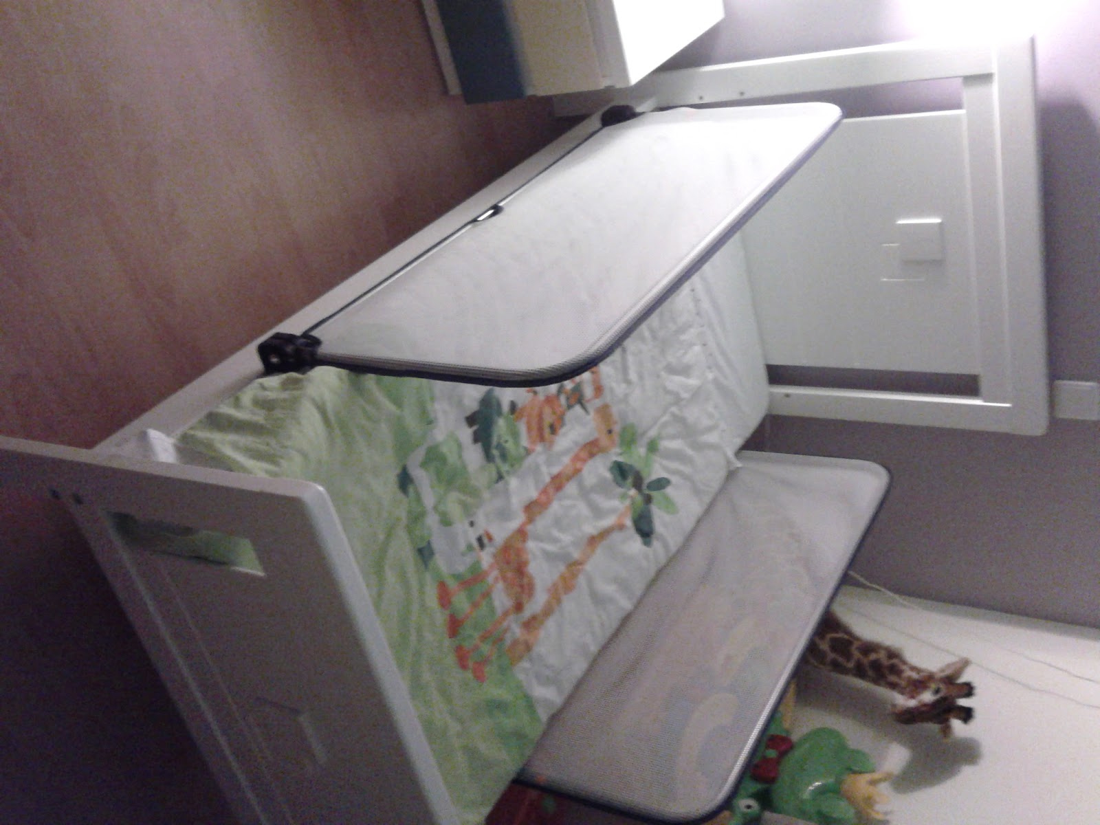 A parte de mudar a cama foi, como esperávamos, pacifica, uma vez que as camas dos dois são de 140x70 e dão até cerca dos 7 anos, necessitando apenas de tirar as grades e trocar a parte dos pés da cama que já vinha incluída.